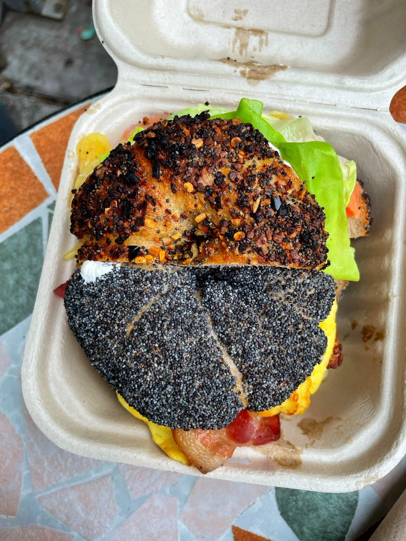 Located in Williamsburg off the L, Bagel Smith's location cannot be beat. Any weekend morning, williamsburg residents and partygoers from the night before form a line out the door, and for a good reason. BagelsSmith’s bagels are airy, with a chewy exterior rather than a crispy one. While their bagels are on the lighter side, their sandwiches are not. Packed and a little greasy, these bagels are perfect for a hungover morning or end-of-night snack (often affectionately referred to as drunchies). Luckily for all of us, Bagelsmith is open 24 hours and is ready to make these sandwiches in the moments we need them most.
