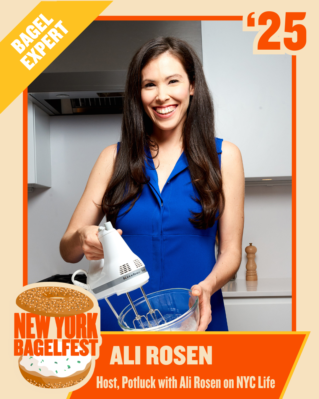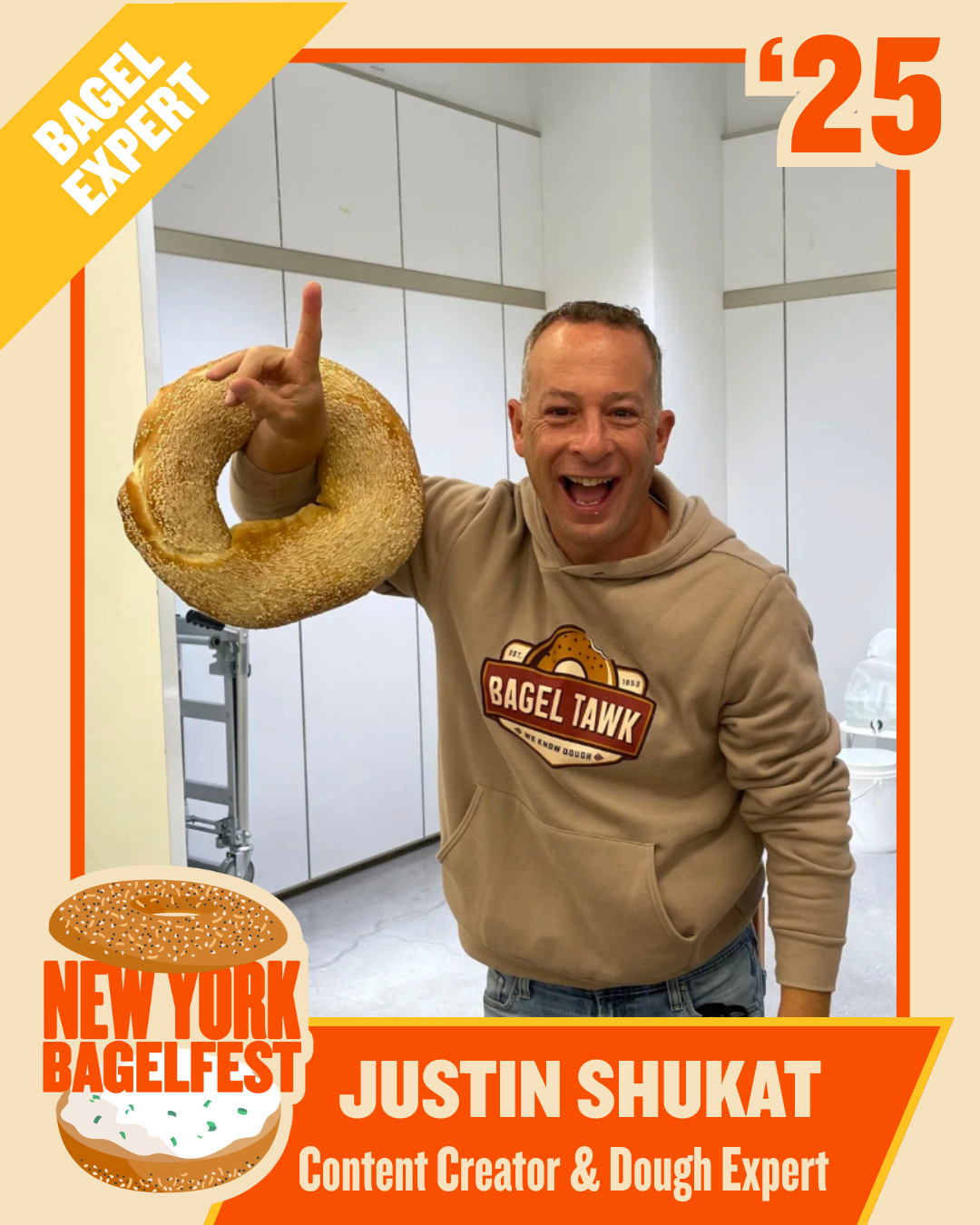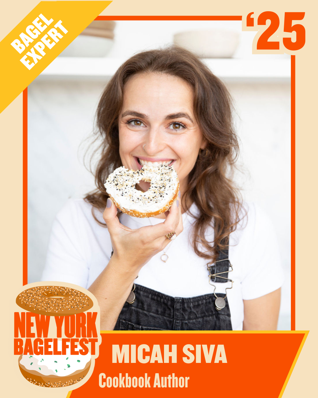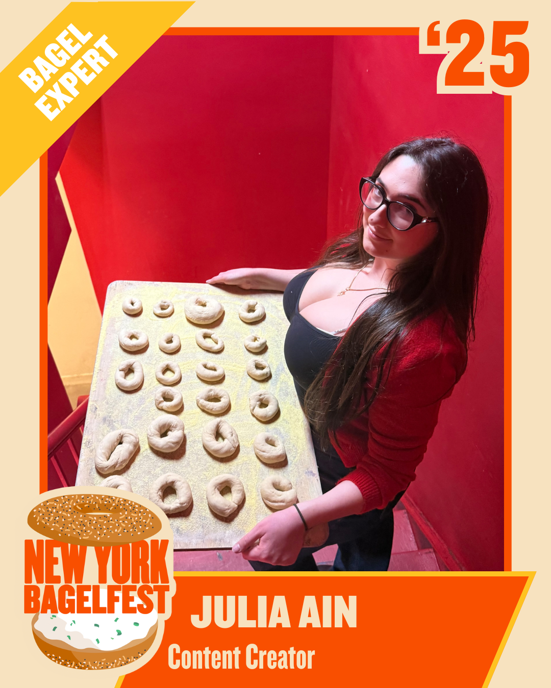 Julia Ain aka “Queen Julia” is a New York based content creator known for mixing humor, Jewish identity, and everyday chaos for her million plus followers online. Originally from Montreal, she grew up surrounded by some of the best bagels in the world which makes her especially excited to join BagelFest as a judge and to try as many bagels as possible.