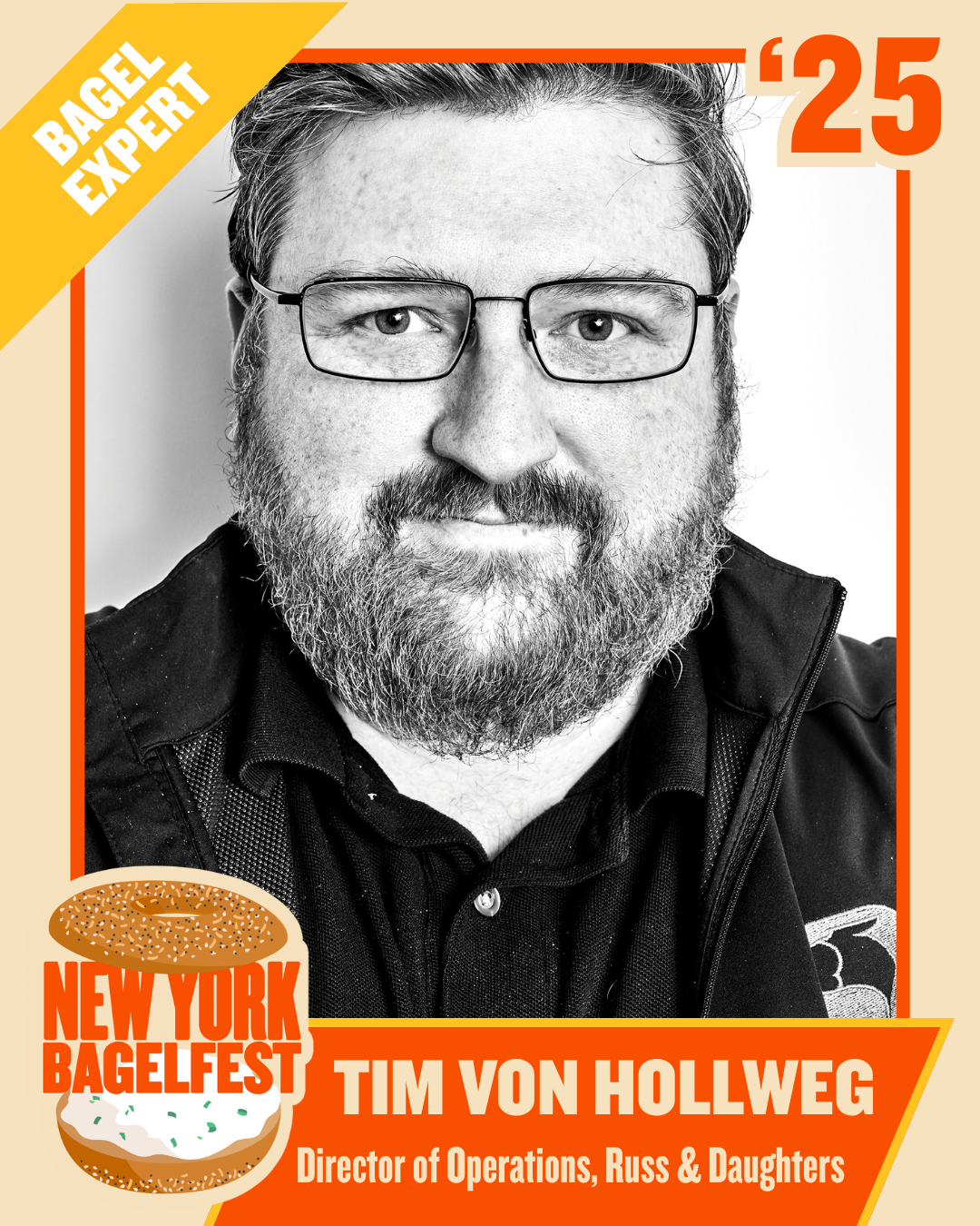 Tim Von Hollweg is a native New Yorker who grew up in Stuyvesant Town and has been eating bagels since he was six months old. For the past seven years, he has served as Director of Operations at Russ & Daughters, overseeing multi-location retail, bakery production, and e-commerce for one of the city’s most iconic culinary institutions. Before that, Tim spent four years as Director of Purchasing at Barclays Center, managing procurement and vendor relations for one of the busiest arenas in the country. His career began with a decade at Drew Nieporent’s renowned Myriad Restaurant Group, where he held leadership roles at Tribeca Grill, Nobu, and Montrachet. With 20+ years of experience spanning fine dining, large-scale hospitality, and heritage food culture, Tim brings expertise in systems, people, and product—always rooted in a lifelong passion for New York.