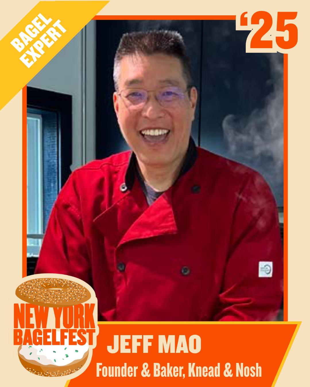 Jeff Mao is the founder of Knead & Nosh, a Maine-based microbakery specializing in traditional hand-rolled New York style bagels. A baker for over 15 years, his craft was recognized in August 2025 when an expert panel awarded him the Maine Bagel Bake-Off's "Best Bagel Award."